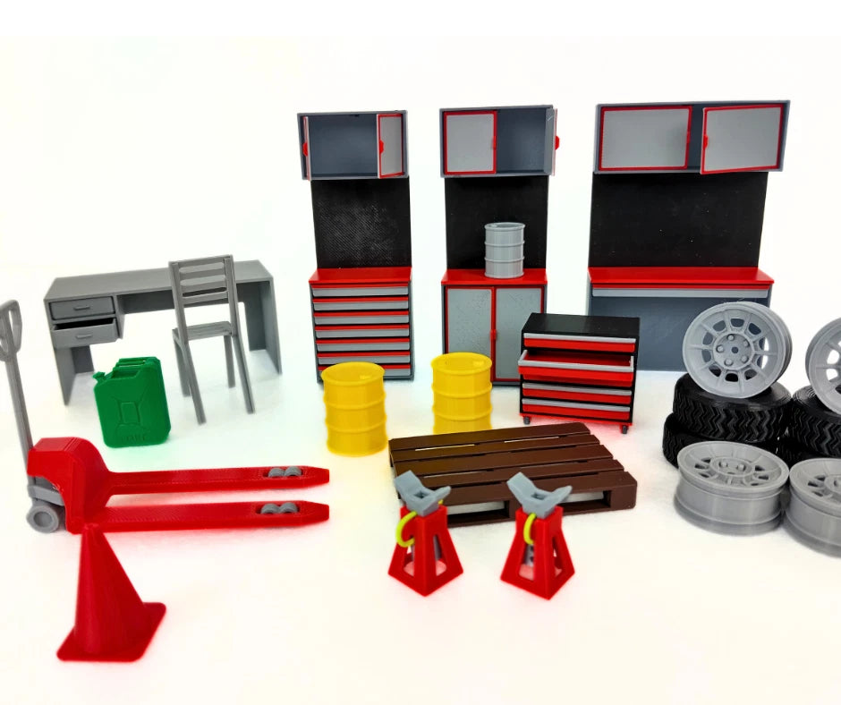 1:18 Scale Auto Service Furniture & Tools Diorama Set – Durable Plastic
