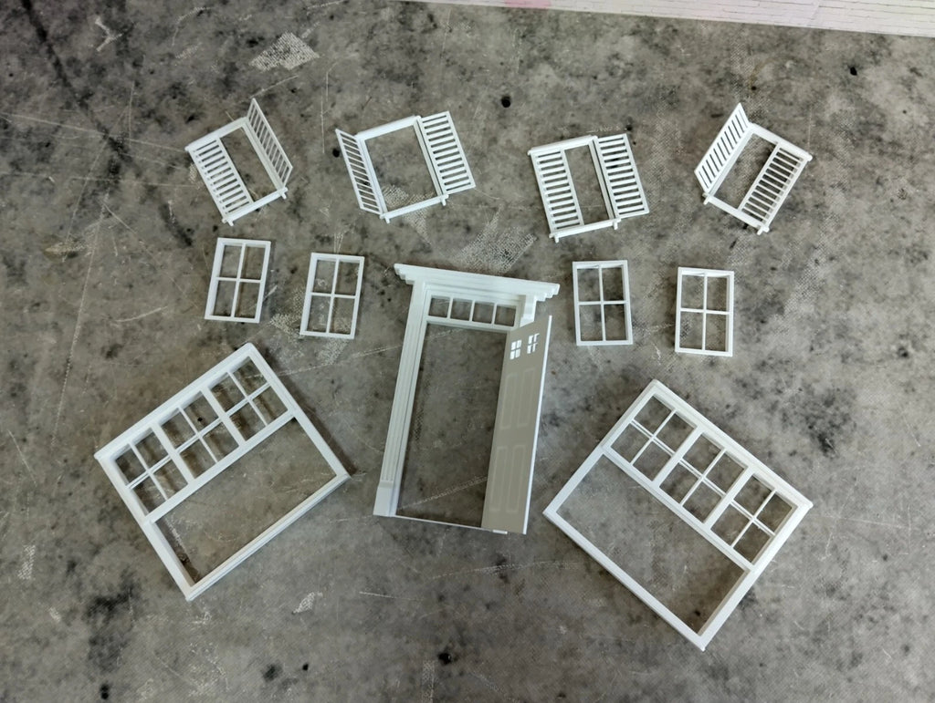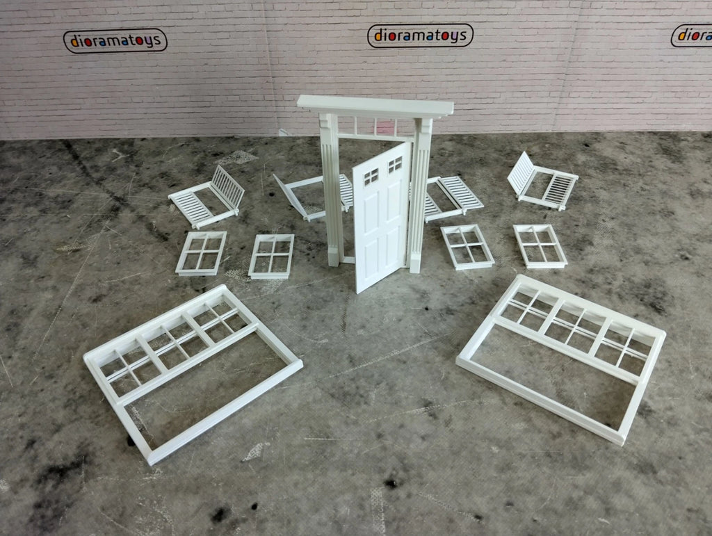 This set includes meticulously designed components to build a detailed door and window assembly for your 1:18 scale diorama.