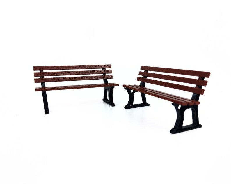 Enhance your miniature scenes with this set of 2 detailed 1:18 scale street benches, perfect for diorama layouts, park displays, and garden-themed decorations.
